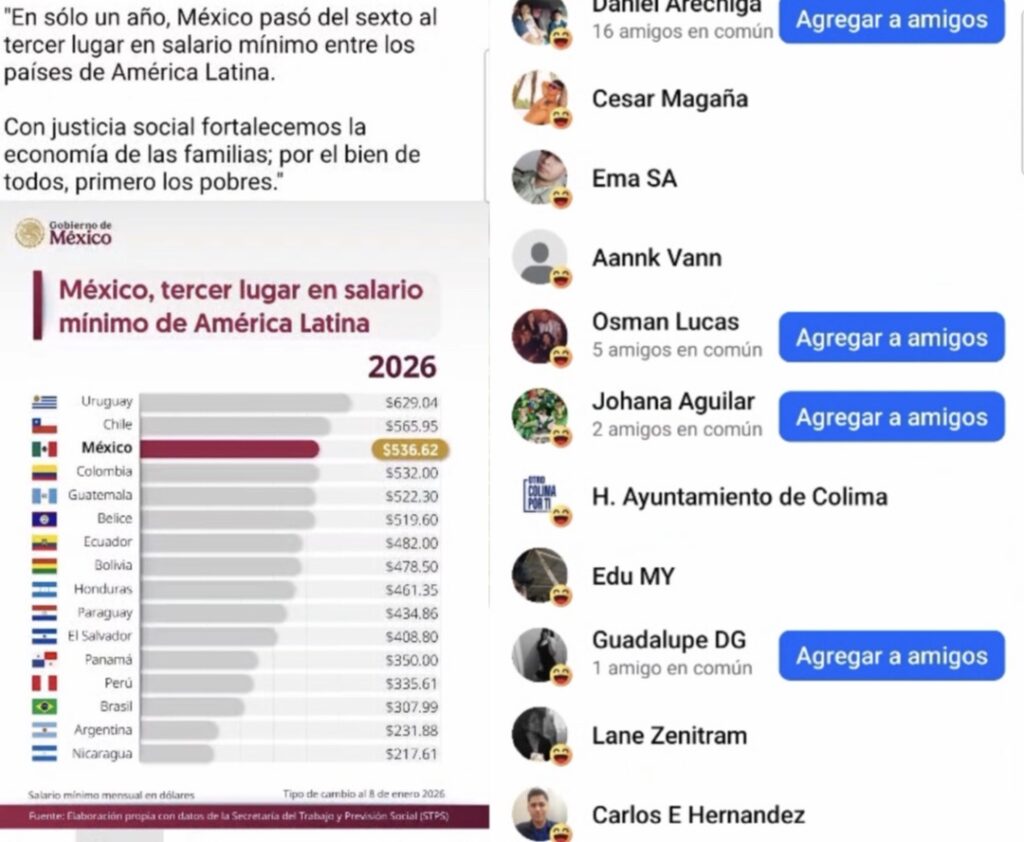 La prueba más contundente se registró el 9 de enero, cuando una publicación del medio Archivo Digital Colima, titulada “México, tercer lugar en salario mínimo en América Latina”, recibió una reacción de “me divierte” por parte de la cuenta oficial de Facebook del H. Ayuntamiento de Colima, una acción que rompe con cualquier principio de neutralidad institucional.
